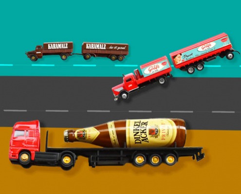Die kleinen Laster habe ich fotografiert, freigestellt und in ihr neues Umfeld gebracht.